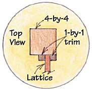 lattice panel, then hold in place with 1-by-1s at top and bottom.