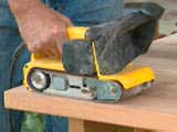 the wood's grain. Keep the belt sander flat on the wood (figure